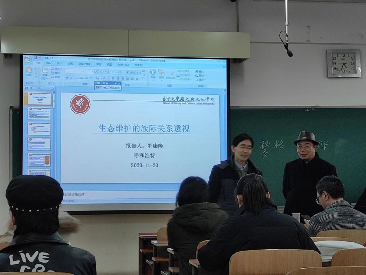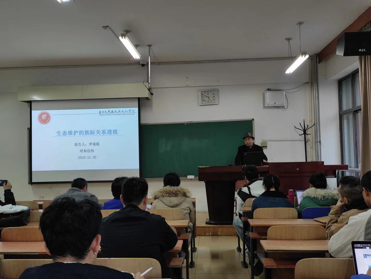2020年11月20日,吉首大学历史文化学院教授、院长罗康隆老师受邀来我院为各位师生带来了一场别开生面的讲座——“生态维护的族际关系透视 ”。本次讲座由太阳集团tcy8722阿拉坦宝力格教授主持。学院孟和乌力吉教授、梅花教授等老师以及全体研究生同学参加了本次讲座。